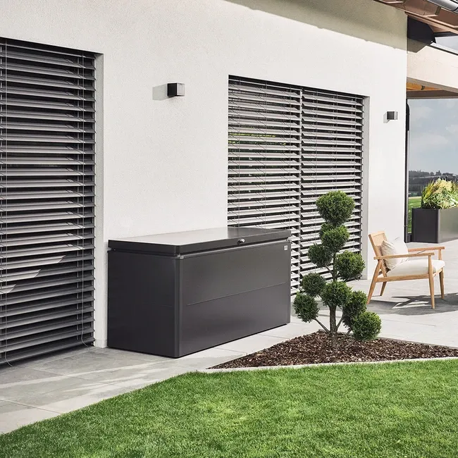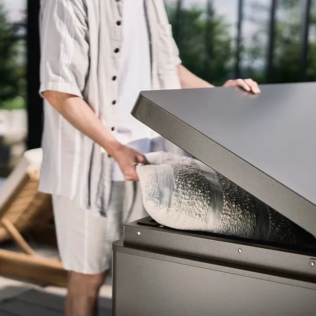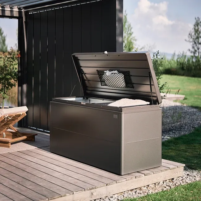 De Biohort LoungeBox® is ontworpen voor het netjes en droog opbergen van lounge- en tuinkussens. Dankzij het strakke ontwerp met gladde oppervlakken vormt deze box een rustige en verzorgde aanvulling op het terras of in de tuin. De LoungeBox is bij uitstek geschikt voor wie op zoek is naar praktische opbergruimte met een hoogwaardige uitstraling.