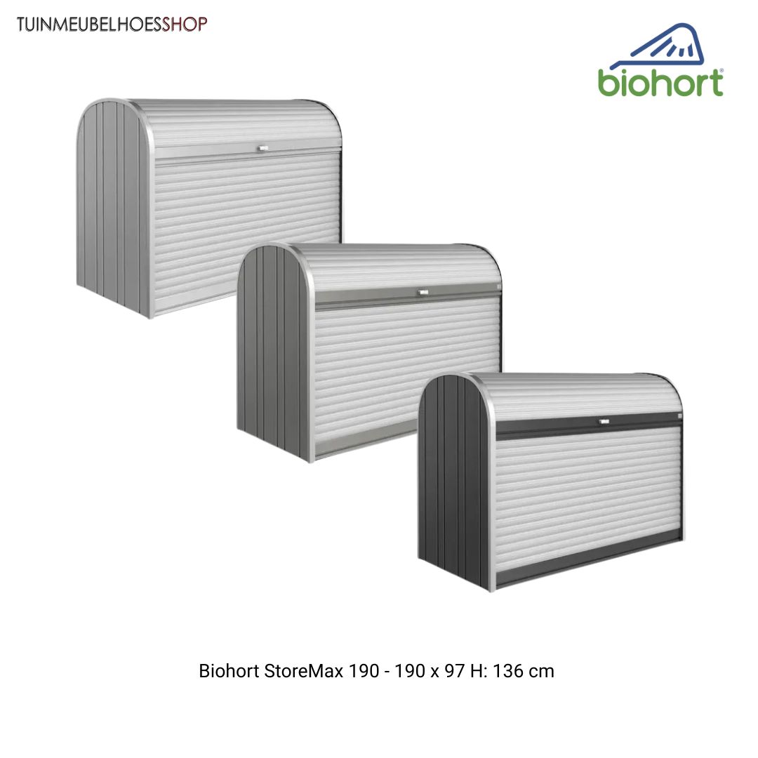 De StoreMax past moeiteloos in elke buitenruimte dankzij de tijdloze Biohort-kleuren. U heeft de keuze uit:
