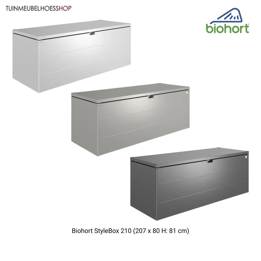 Zoals alle Biohort producten is ook de StyleBox vervaardigd uit hoogwaardig, vuurverzinkt staal met een duurzame coating. Dit materiaal is bestand tegen uiteenlopende weersinvloeden en blijft jarenlang mooi zonder schilderen of intensief onderhoud. De box is regenwaterdicht uitgevoerd, zodat de inhoud goed beschermd blijft tegen vocht.