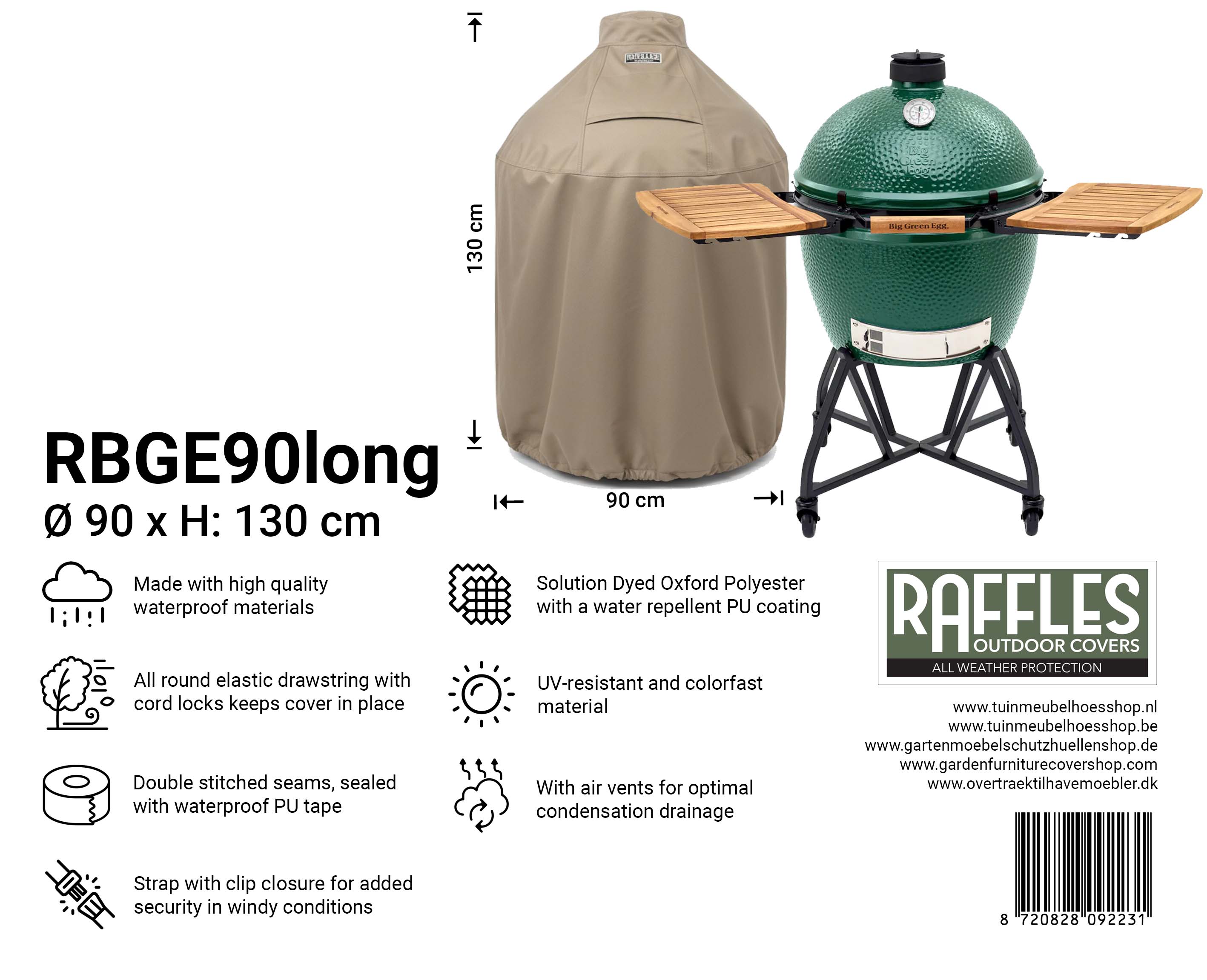 Product specificaties "Raffles Covers Kamado Hoes voor Big Green Egg & Kamado BBQ’s"