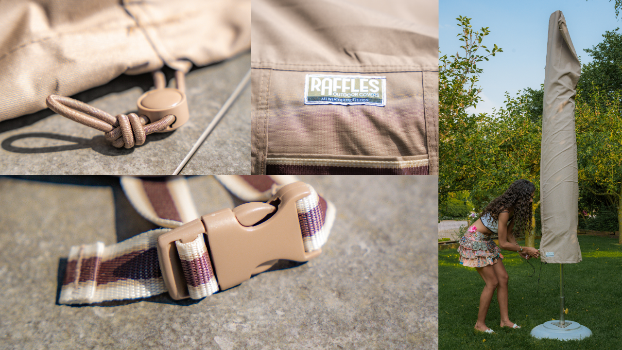 AeroCovers parasolhoezen zijn uitgerust met een geïntegreerde stick in de naad van de hoes. Hiermee kan de parasolhoes makkelijk over een hoge parasol getrokken worden. De opbergtassen voor loungekussens hebben versterkte handvaten en een rits die naar 2 kanten open kan, zodat u makkelijk bij de tuinkussens kunt.
